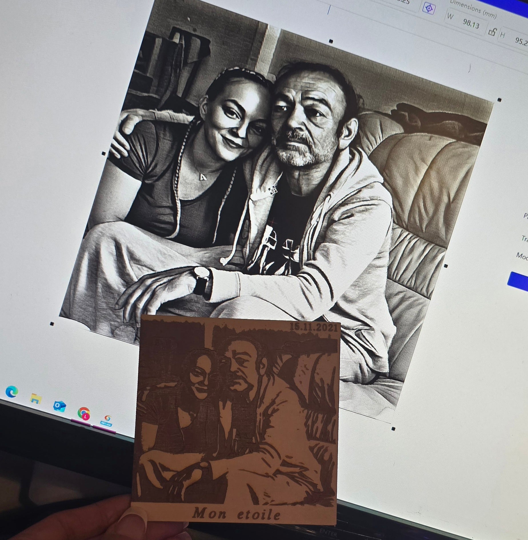 Gravure sur bois avec photos il y a exactement 1heure 30 de travail.